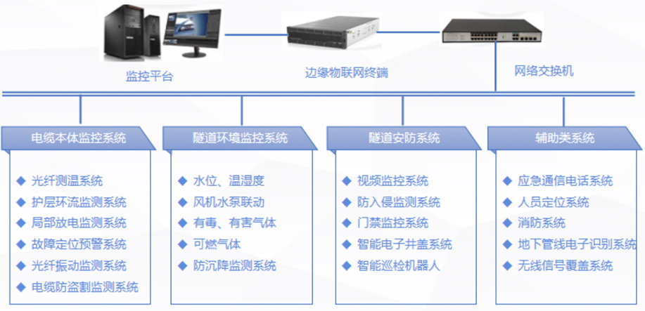 输电电缆及通道在线监测系统充分考虑电力行业供方和用户的运营现状,以及现存电力地下电缆网监控系统存在的一些问题,遵循技术可靠先进性原则、架构可拓展性原则、系统兼容稳定性原则以及成本与维护的利害关系,建立了一套科学的电缆本体及其环境在线监测系统。该系统利用了当前最先进的智能化监测和物联网技术,依托于电力网络管理信息平台架构,并能在信息平台持续成长的基础上,不断的、合理的实现电缆在线监控。